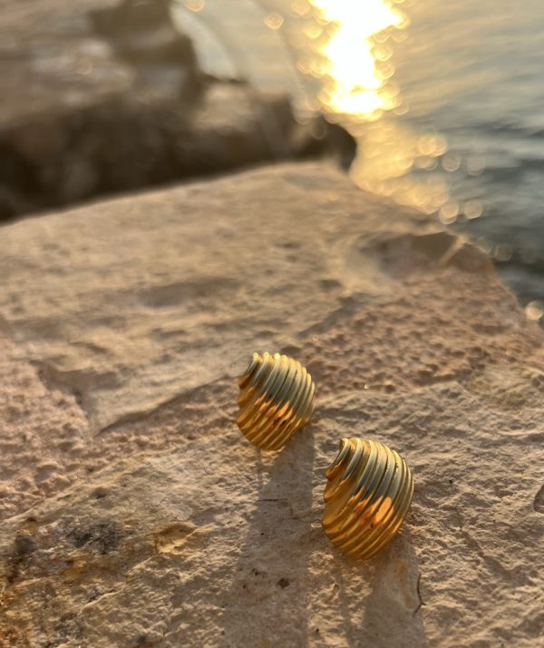 These stunning stud earrings take inspiration from the elegant shape of seashells and vintage designs, part of the Θeros Collection the Ostracon earrings are the perfect addition to every outfit.
